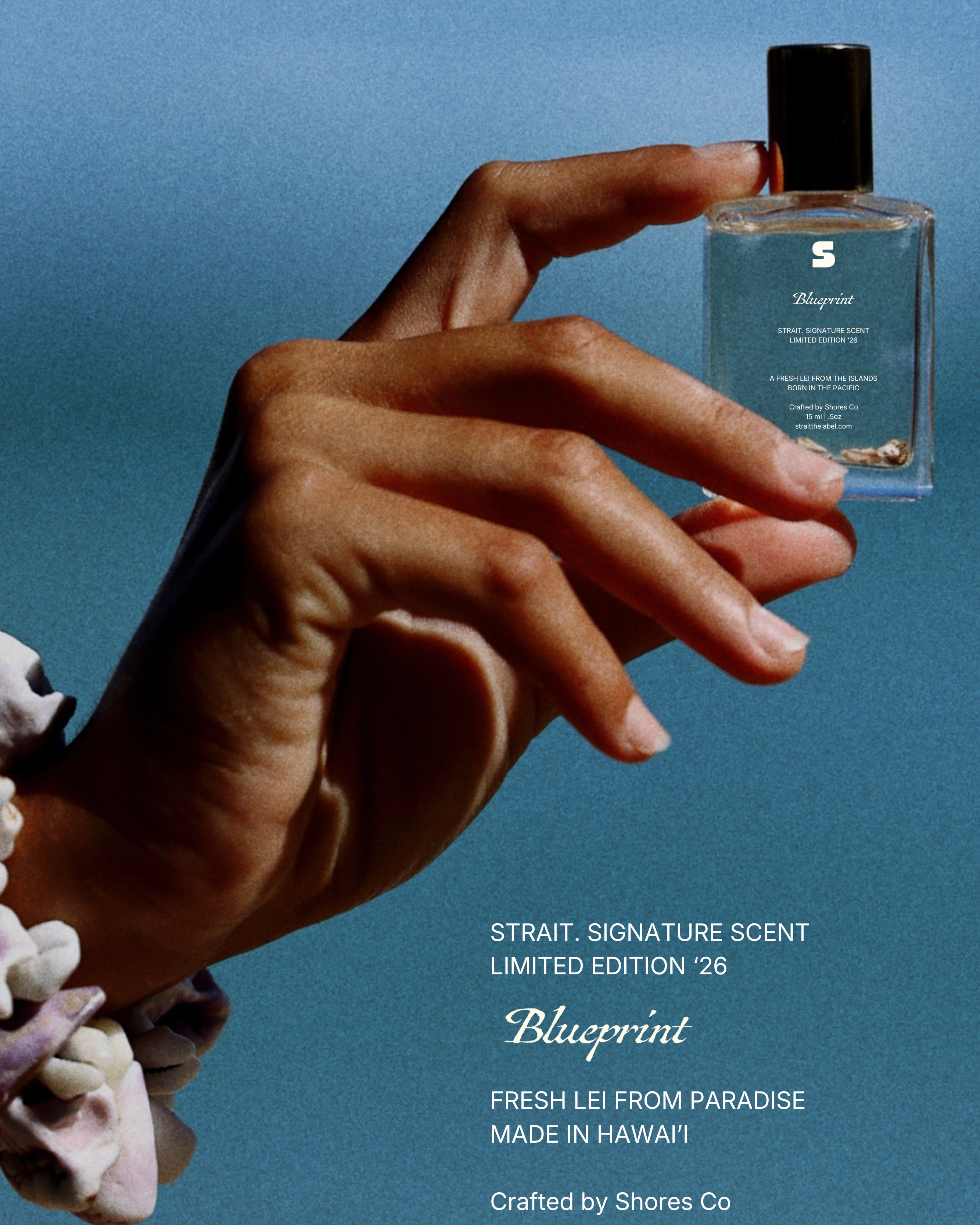 Our Strait Signature limited edition scent — the first fragrance created for Strait and a gift from the Pacific. Crafted in collaboration with Shores Co and blended in small batches along the shorelines of Hawai‘i, Blueprint captures the essence of a fresh island lei — light florals, soft warmth, and ocean air. Designed to ground you, connect you, and keep the feeling of the sea close, wherever you are. A timeless island essential, held in a 15 ml keepsake finished with floating seashells — a quiet signature of where our story begins. Forever in a Strait state of mind.
