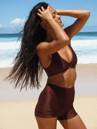 The Roam Shorts are a go-anywhere swim essential, built like activewear for gym-to-swim adventures. Featuring a sleek seamless fit, flattering curved waistband, and hidden pocket, they stay put and move with you wherever you roam.