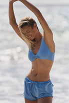 The Roam Reversible Top is your ultra-functional, adventure-ready essential — designed to go from gym to swim without skipping a beat. With a sporty silhouette and secure coverage, it’s made for movement, whether you're paddling out, diving in, or hitting a sunrise workout. Fully reversible, it offers the option of a plunging gathered front neckline or a full-coverage crop tank, giving you two versatile looks in one.