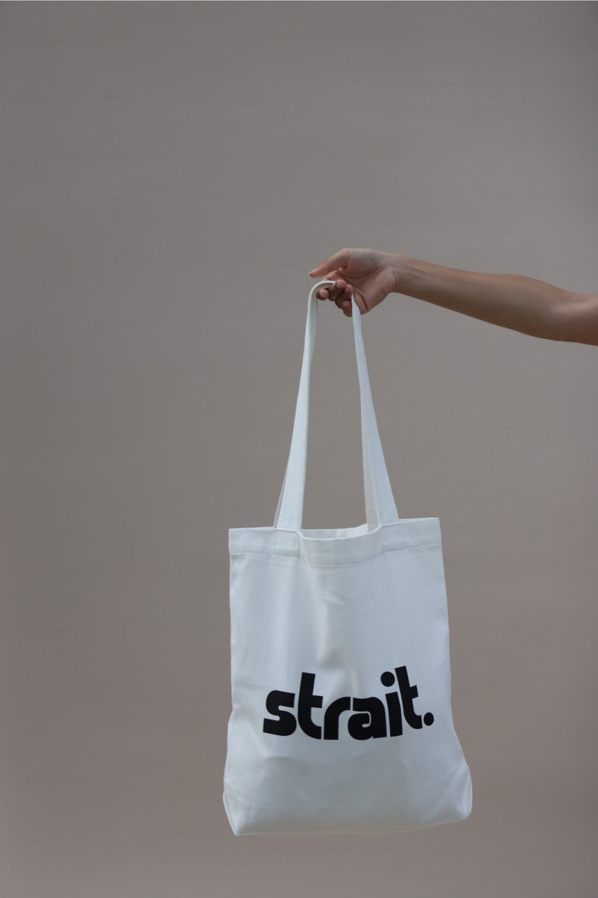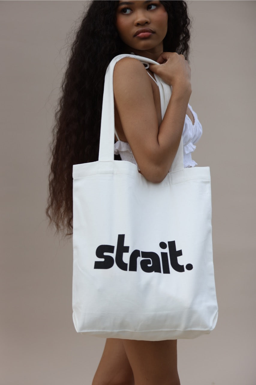 Our Logo Canvas Tote Bag features a stylish yet simple printed Strait design.
