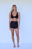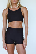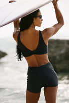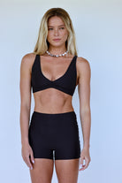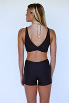 The Roam Reversible Top is your ultra-functional, adventure-ready essential — designed to go from gym to swim without skipping a beat. With a sporty silhouette and secure coverage, it’s made for movement, whether you're paddling out, diving in, or hitting a sunrise workout. Fully reversible, it offers the option of a plunging gathered front neckline or a full-coverage crop tank, giving you two versatile looks in one.