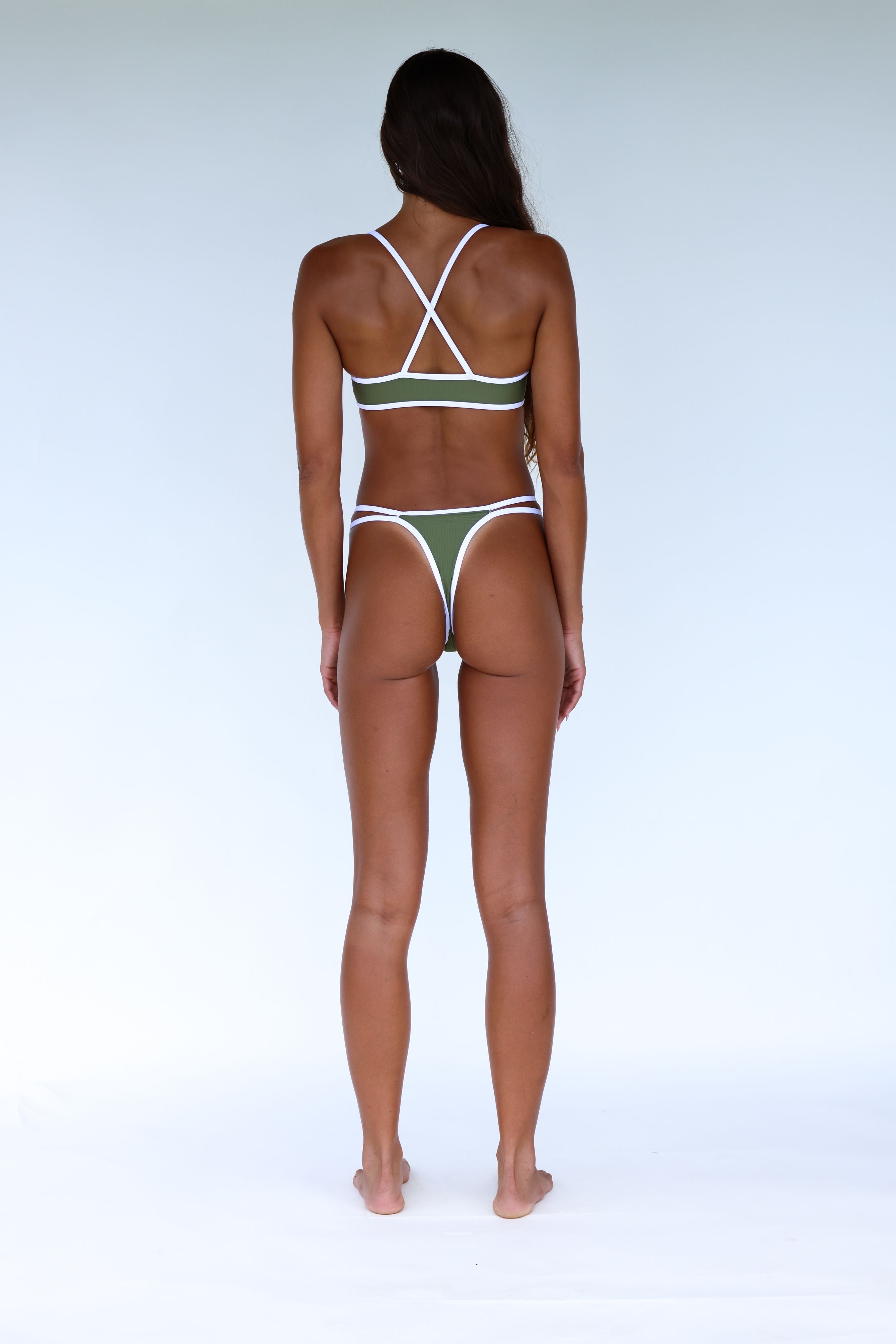 A timeless cross-back bralette made for active summer days and endless ocean dips. With a secure, flattering fit and sporty contrast trim, it moves with you from surf to sun — sleek, supportive, and effortlessly chic.
