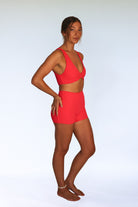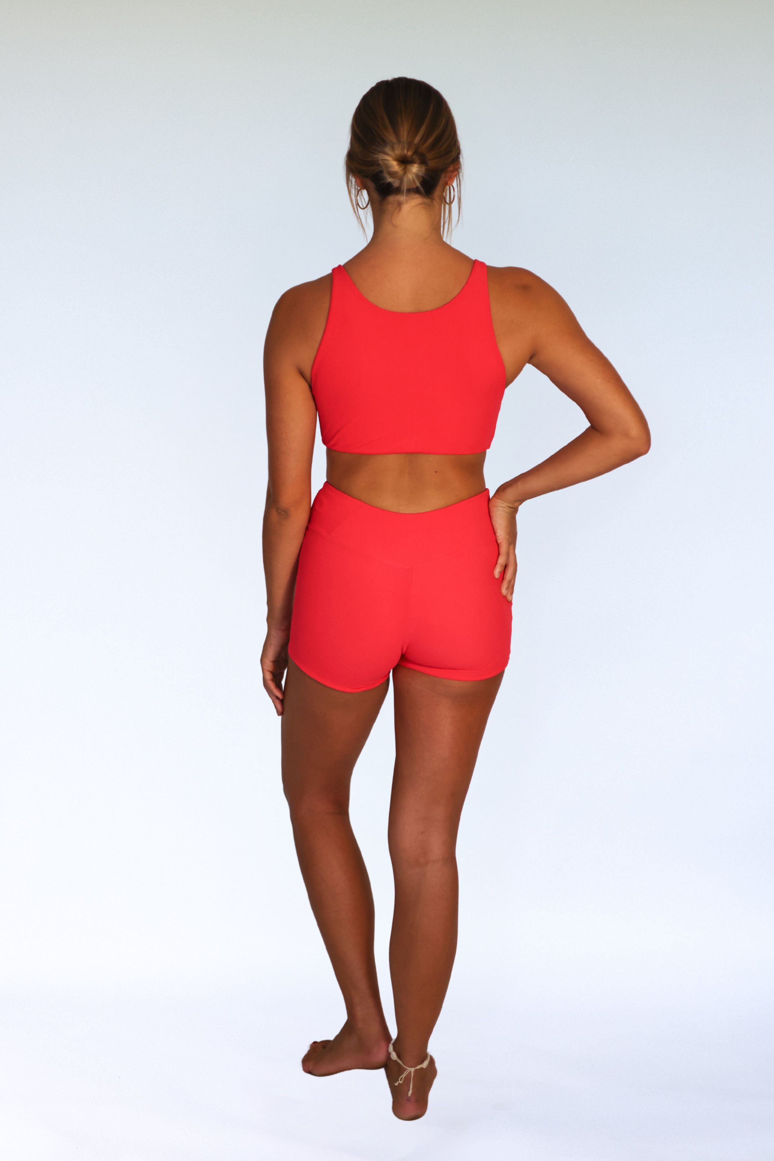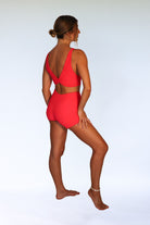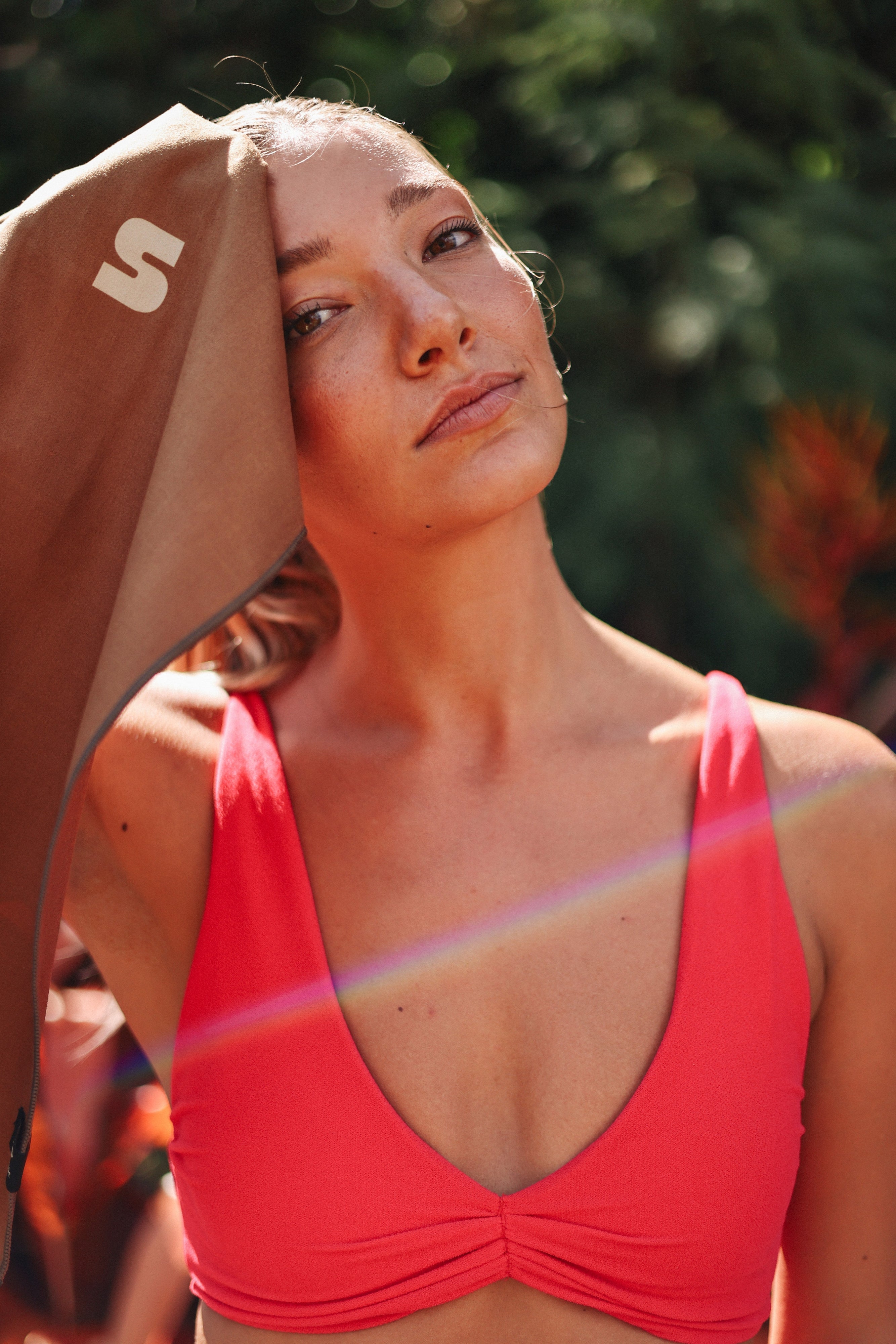 The Roam Reversible Top is your ultra-functional, adventure-ready essential — designed to go from gym to swim without skipping a beat. With a sporty silhouette and secure coverage, it’s made for movement, whether you're paddling out, diving in, or hitting a sunrise workout. Fully reversible, it offers the option of a plunging gathered front neckline or a full-coverage crop tank, giving you two versatile looks in one.
