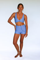 The Roam Reversible Top is your ultra-functional, adventure-ready essential — designed to go from gym to swim without skipping a beat. With a sporty silhouette and secure coverage, it’s made for movement, whether you're paddling out, diving in, or hitting a sunrise workout. Fully reversible, it offers the option of a plunging gathered front neckline or a full-coverage crop tank, giving you two versatile looks in one.