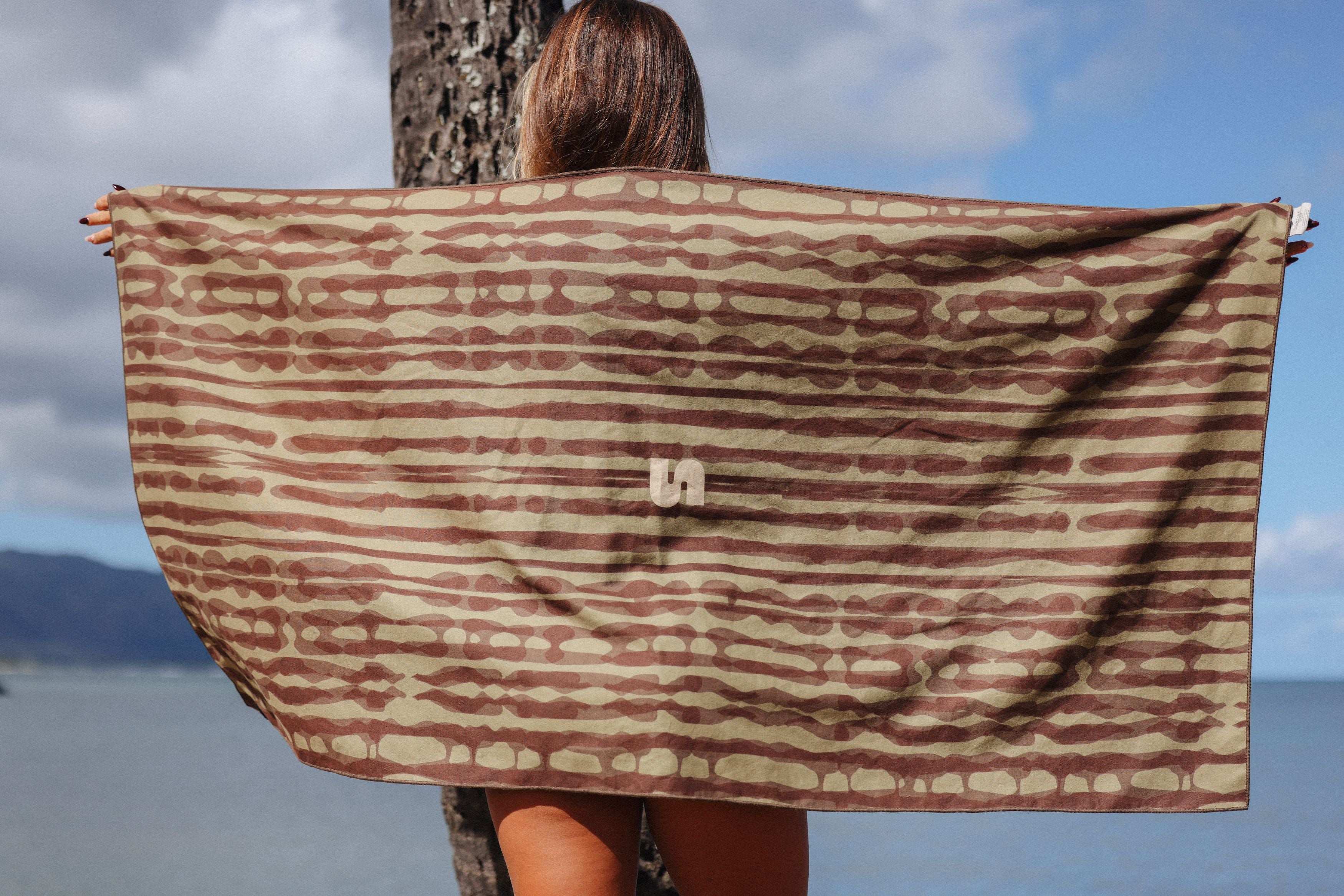 Introducing our Strait. The Label x Slowtide, perfect adventure Manō Quick-Dry Towel. Highly absorbent and quick-drying, it soaks up 4x its weight in water and dries twice as fast as a standard cotton towel. With a 350 GSM terry texture, it's durable, sand-free, and compact for easy travel. Whether you're at the beach, gym, or on a hike, this versatile towel is your go-to companion. Plus, it's made from 100% post-consumer waste—about 23 recycled plastic bottles—certified by the Global Recycled Standard for a sustainable choice you can feel good about.