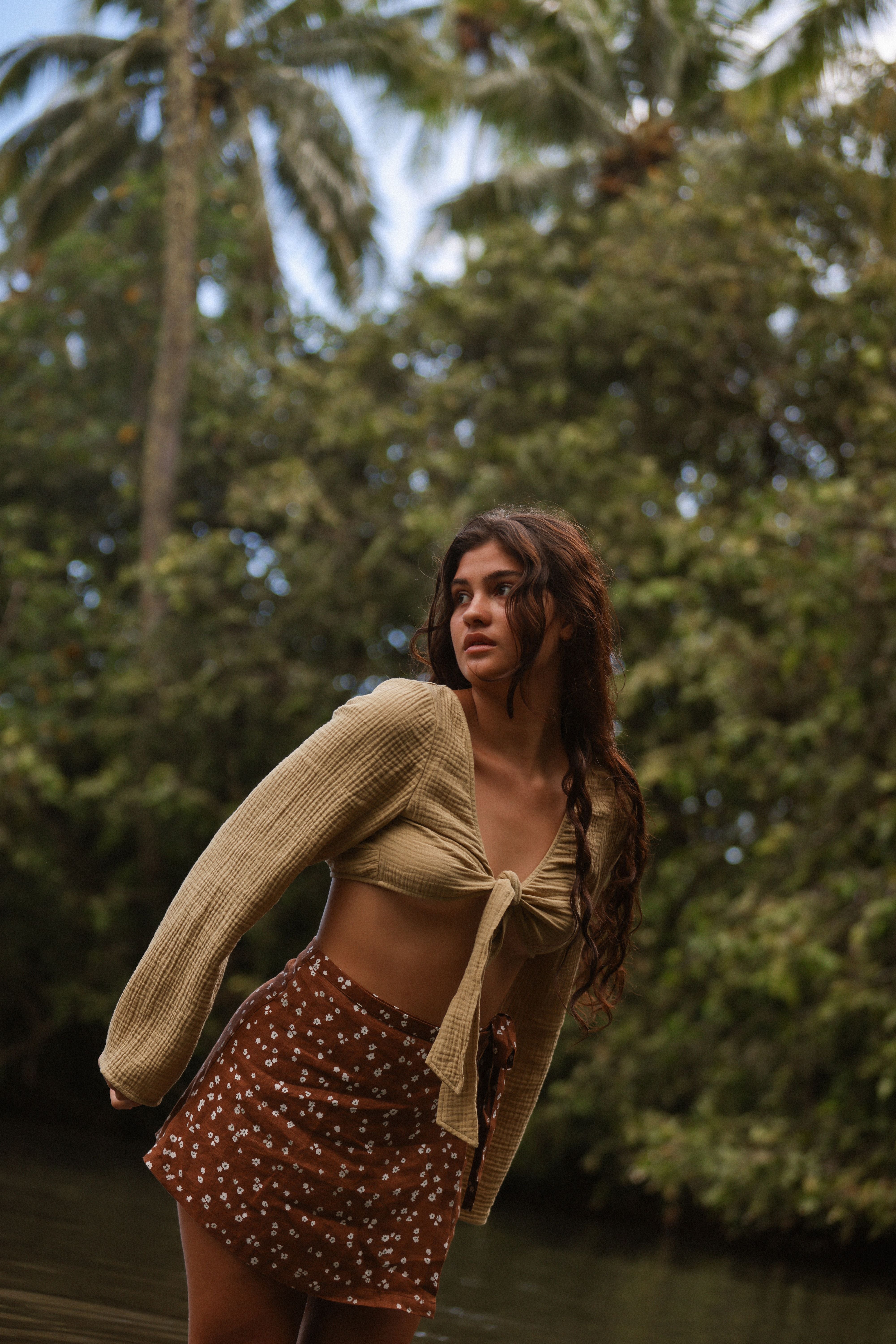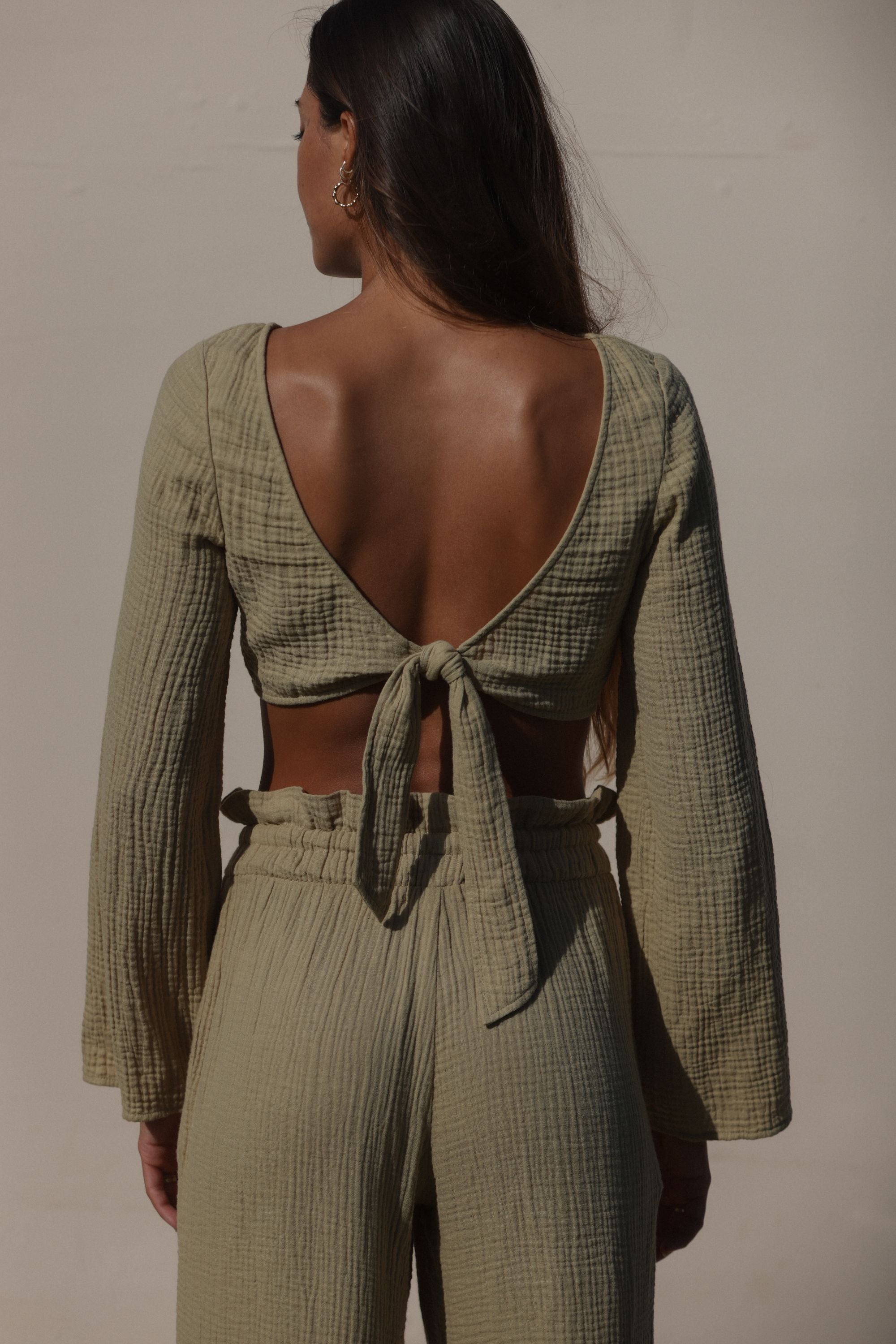 Double the style, double the fun — the Oasis Tie Top is reversible, with bow-tie or twisted-front options for endless looks. Perfect for layering, casual days, or dressing up for evening outings. Pair it with the Poema Pant for a breezy all-day set.